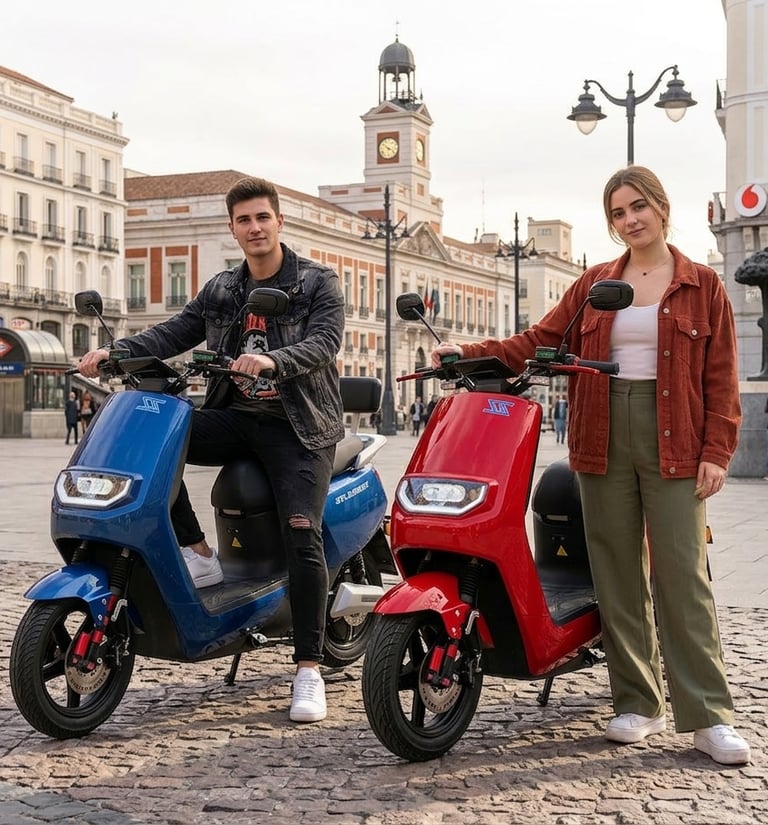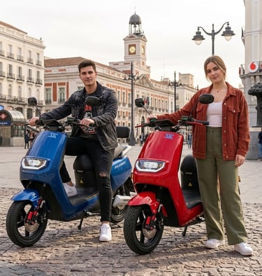 Un scooter eléctrico 49 fabricado y homologado en España para vías públicas y con capacidad para un pasajero adicional.