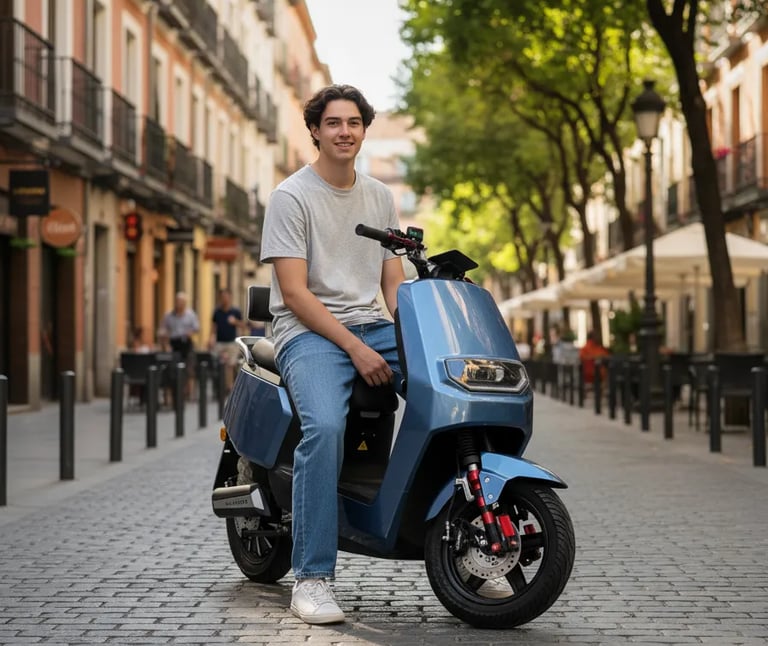 Fabricado 100% en España con un diseño moderno y funcional, dirigido a un público amplio: usuarios urbanos, rurales y playeros que necesitan un ciclomotor eléctrico de 49 cc para el uso diario.